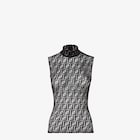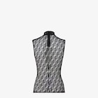 高領無袖上衣。合身。黑色平紋針織蕾絲製成,飾有滿版經典FF圖案,營造出透視效果。無襯裡。