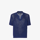 短袖毛衣,搭配無鈕扣敞開式Polo衣領設計。中型款式。羅紋飾邊。藍色棉質紗線製成,呈現鏤空透視效果。衣領背面綴有FF Selleria細節的同色系皮革貼片。