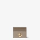 FF Diamonds card case with diagonal FF logo, central compartment and six card slots. Made of smooth calfskin and full-grain leather in brown and beige. Gold-finish metalware.