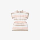 Cotton knit baby dress with multicolour stripes in pink, white and sand. White Fendi logo detail on the front.