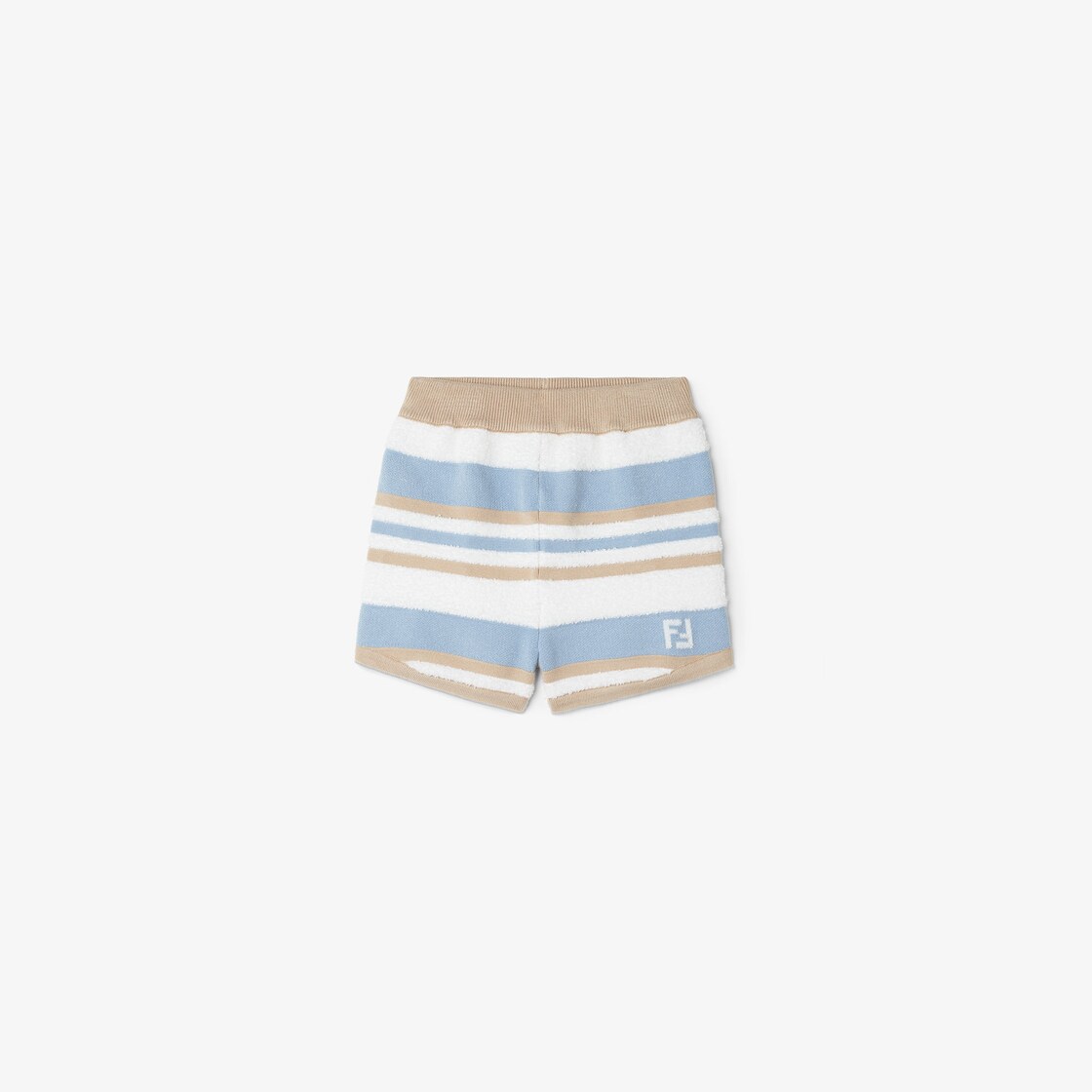 Cotton knit baby shorts with multicolour stripes in light blue, white and sand. White FF logo detail on the front.
