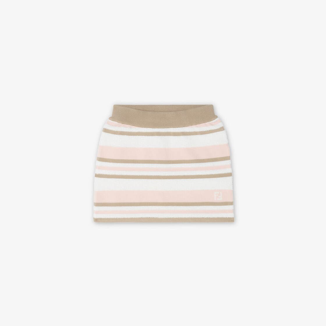 Cotton knit midi junior skirt with multicolour stripes in pink, white and sand. White FF logo detail on the front.