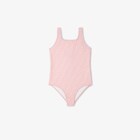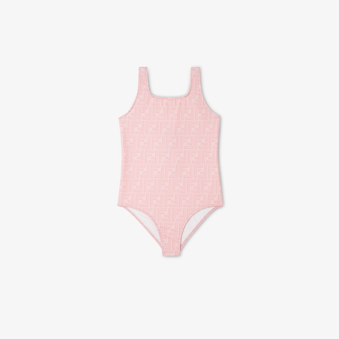 Junior one-piece swimsuit in pink Lycra with tone-on-tone all-over FF logo print and Fendi embroidery on the front.