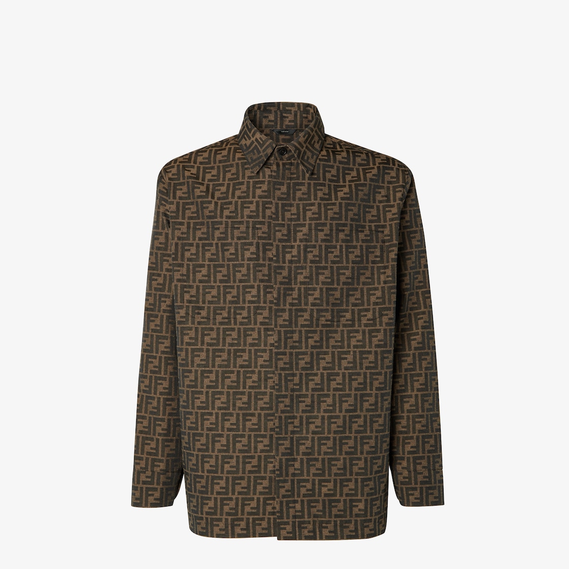 Jacket with shirt collar and patch pockets on the chest. Concealed button fastening. Made of brown fabric with all-over jacquard FF motif.