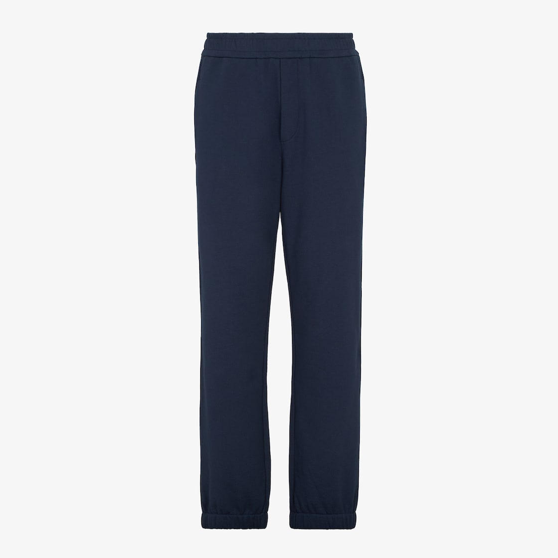 Joggers with elasticated insert at the waist and ankle. Side pockets and welt pockets on the back. Made of dark blue washed pure cotton. Finished with an embroidered FF logo under the right, back pocket.