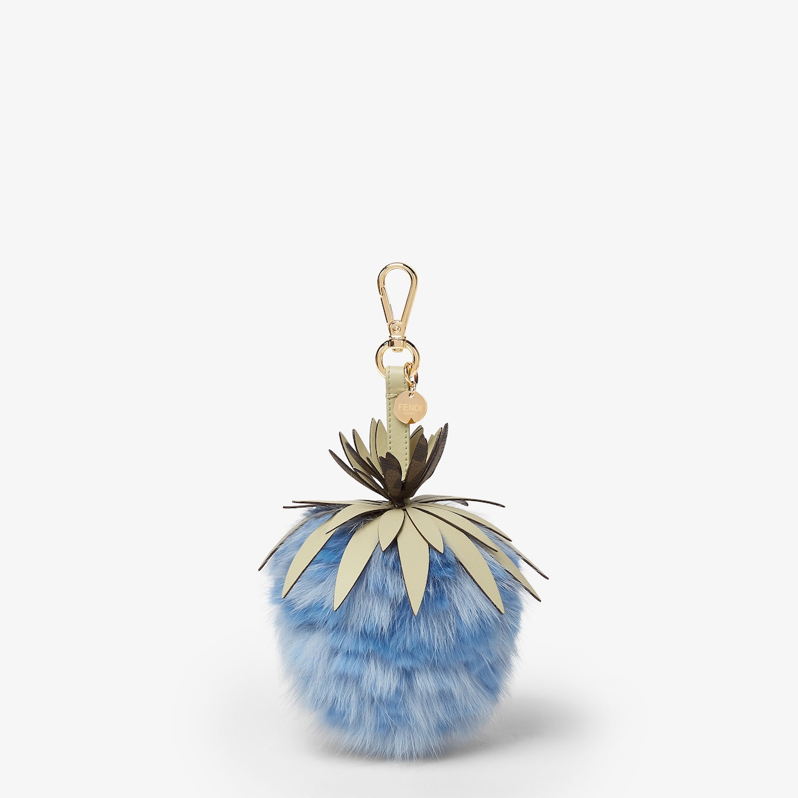 Fendi Pineapple charm with leather strap, clip and tag customised with the Fendi logo. Made of blue fox and rabbit fur. Gold-finish metalware. Ideal as an accessory for bags and key rings.