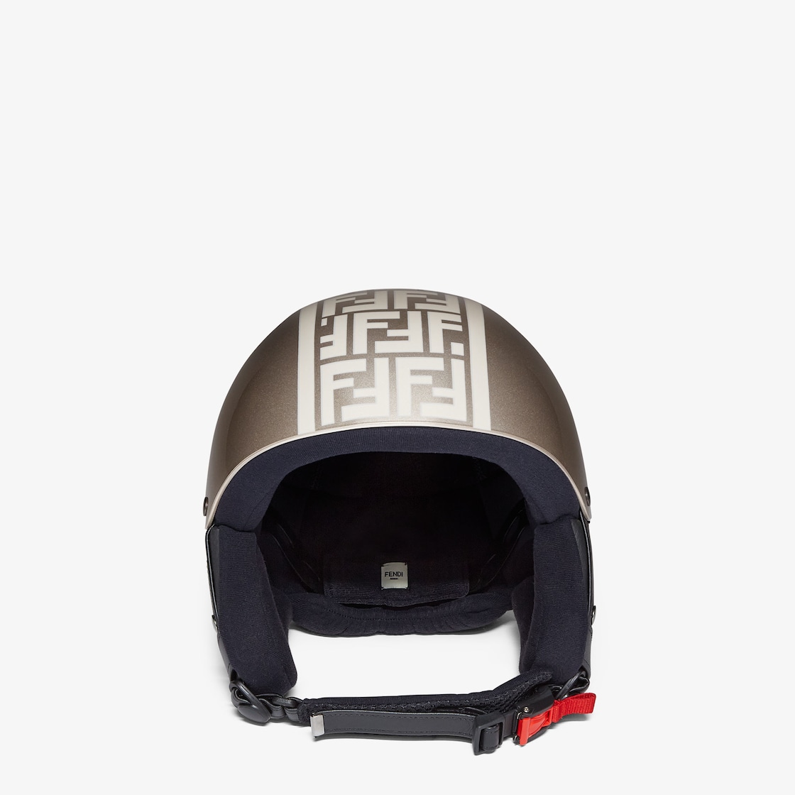 Ski helmet with adjustable strap and fastening. In shades of cream decorated with matching-tone printed FF band. Black padded fabric lining.
