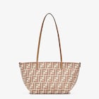 Reversible shopper in Pequin striped and beige FF fabric
