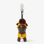 Charm Ito para bolsos confeccionado en piel marrón. Charm con forma de perro con cordón de piel y pinza personalizada. Acabado con gorro y sudadera de punto naranja y con collar de piel con medalla con logo. Accesorios de metal con acabado paladio.