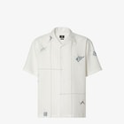 Camisa de manga corta con cuello bowling. Presenta cierre con botones de nácar. Confeccionada en tejido de lino blanco con motivo FF a cuadros bordado en la parte delantera y las mangas en tonos multicolor.