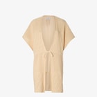 Poncho de volumen amplio con cordón ajustable en la cintura acabado con terminales de metal con logotipo. Confeccionado en hilo de suave algodón azul marino, adornado con una mezcla de elaboraciones acanaladas y detalles FF.