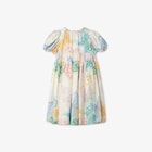 Vestido júnior de seda y algodón con estampado all over multicolor de mariposas, mangas con volantes y bordado Fendi en la parte delantera.