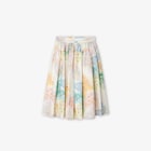 Falda júnior de largo medio y amplia silueta rueda en seda y algodón con estampado all over multicolor de mariposas.