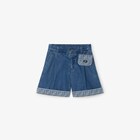 Bermuda júnior de denim azul con estampado de logo FF tono sobre tono en los bordes y Baguette aplicado en la parte delantera.