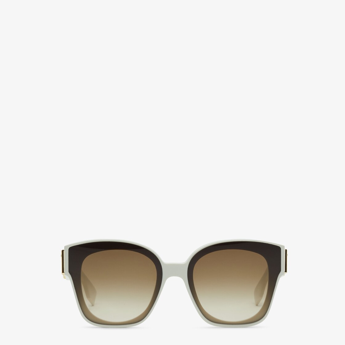 Gafas Fendi First de forma cuadrada confeccionadas en acetato color marfil. El modelo, que forma parte de la colección realizada con la colaboración del diseñador Stefano Pilati, está personalizado con patillas con macromotivo F en diagonal en metal dorado. Lentes ahumadas marrones.