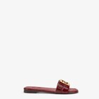 Sandalia plana con punta cuadrada y dos bandas envolventes. El detalle de metal con motivo FF, de diseño original con una bisagra móvil en el centro, garantiza un andar cómodo y agradable. Confección en piel de anguila brillante color beis. Accesorios de metal con acabado dorado vintage.