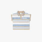 Polo para bebé de punto de algodón a rayas multicolor en tonos celeste, blanco y arena. Detalle del logo Fendi blanco en la parte delantera.