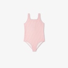 Bañador júnior de Lycra rosa, estampado all over del logo FF tono sobre tono y bordado Fendi en la parte delantera.