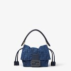 Made of blue FF denim with a flocked texture. Embellished with an FF clasp with dark blue leather insert.