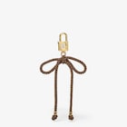 Charm con moschettone a forma di lucchetto e dettaglio FF. Realizzato in metallo con finitura dorata. Laccio lungo con motivo a fiocco in ciniglia Chevron nei toni del marrone. Rifinito con due piccole beads geometriche con logo FF. Ideale per personalizzare il look di tutte le borse della collezione.