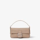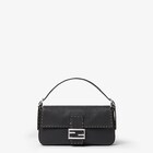 Icona della Maison fin dal 1997, ricreata per la collezione Autunno/Inverno 2026-27 sul modello della versione originale, numero 26424. Realizzata in Cuoio Romano di colore nero con impunture a contrasto fatte a mano, emblema dell’iconica lavorazione Selleria, tramandata dagli artigiani Fendi sin dal 1925. La borsa Baguette® presenta manico e tracolla regolabili e rimovibili per la massima versatilità, oltre alla caratteristica fibbia FF in argento 925 dalla forma leggermente bombata. Completano l’accessorio una patta anteriore con chiusura magnetica, un interno foderato in lino lario e una tasca interna con cerniera. Placca Selleria in argento e accessori metallici in argento..
