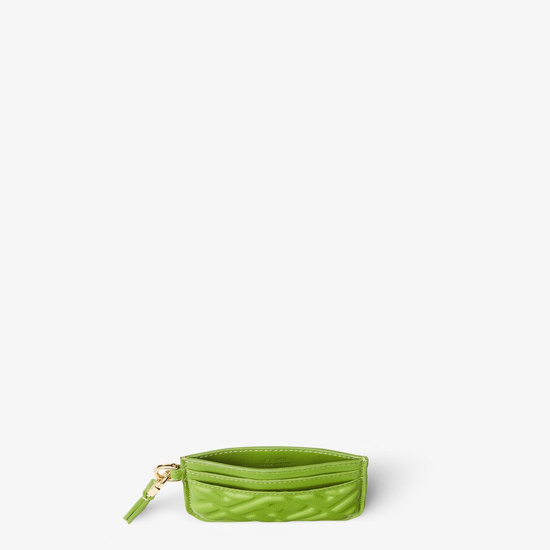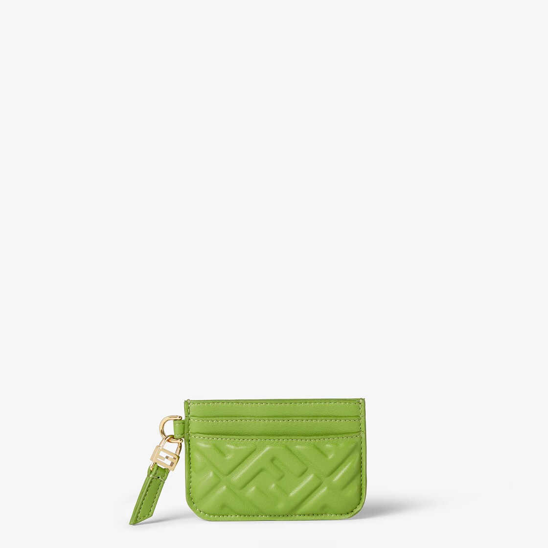 Porta carte piatto in nappa verde foresta con motivo FF