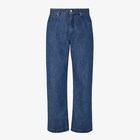 Pantaloni 5 tasche dalla linea dritta. Modello regular fit a vita alta. Chiusura con bottone e zip. Larghezza al fondo 24 cm. Realizzati in tessuto jeans di colore blu. Rifiniti con stampa FF all'interno e rivetti in metallo con finitura palladio. Patch in pelle blu con dettaglio FF Selleria in vita sul retro.