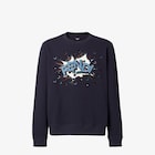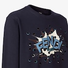 Felpa a maniche lunghe con collo a giro. Regular fit. Realizzata in 100% cotone di colore blu scuro. Personalizzata con motivo Fendi Boompop ricamato a contrasto sul davanti con dettagli ispirati alla fantasia Falena Dots di collezione.