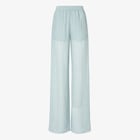 Pantaloni pigiama dalla linea fluida. Vita elasticizzata e tasche laterali. Realizzati in tessuto di mista seta e viscosa azzurra, impreziositi da una lavorazione Pequin dévoré con dettagli FF. Semifoderati con culotte.