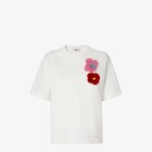 T-shirt dalla vestibilità regular, con collo a giro e maniche corte. Realizzata in jersey di cotone bianco. Decorata con spille Sunny Side Flowers sul petto, composte da fiori in visone nei toni del rosso e del rosa. Rifinita con piccolo logo Fendi ricamato sul petto.