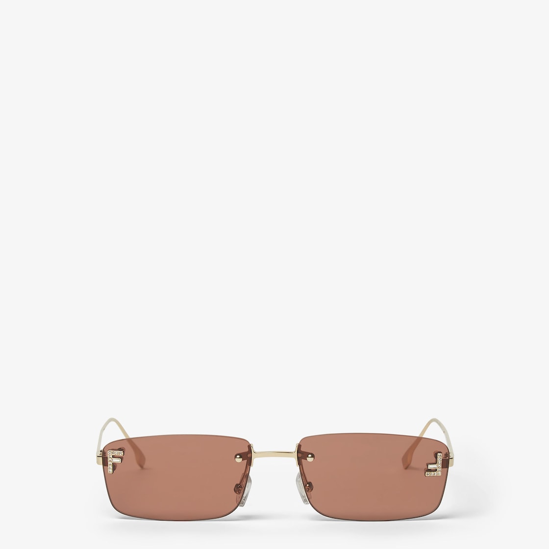 Occhiali Fendi First Crystal dalla forma rettangolare e struttura in metallo rimless color oro. Lenti color Terra di Siena con micro F in cristalli. Naselli regolabili.