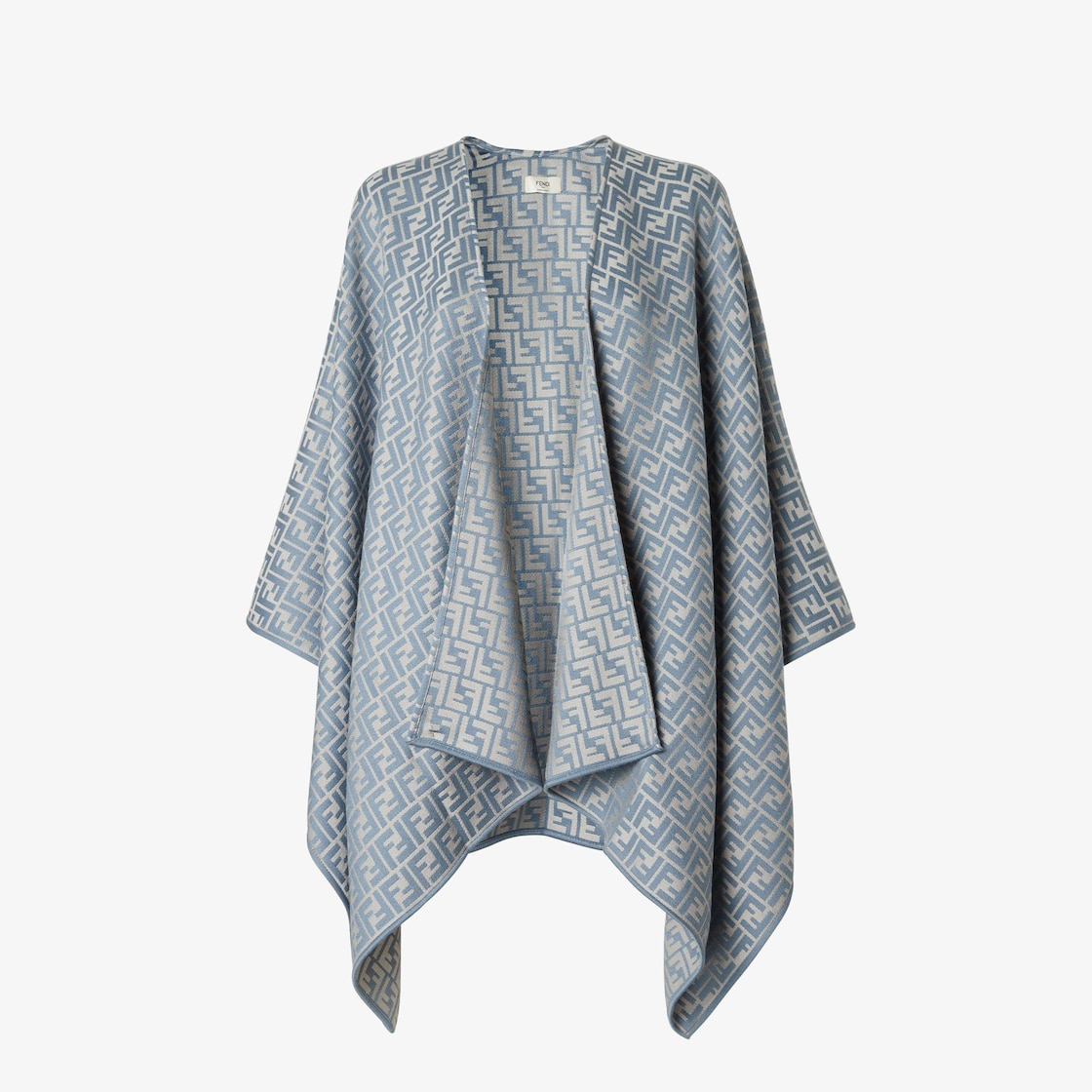 Poncho leggero dal volume avvolgente realizzato in un pregiato mix di lana e seta. La lavorazione jacquard disegna l'iconico pattern FF nei toni del blu denim.