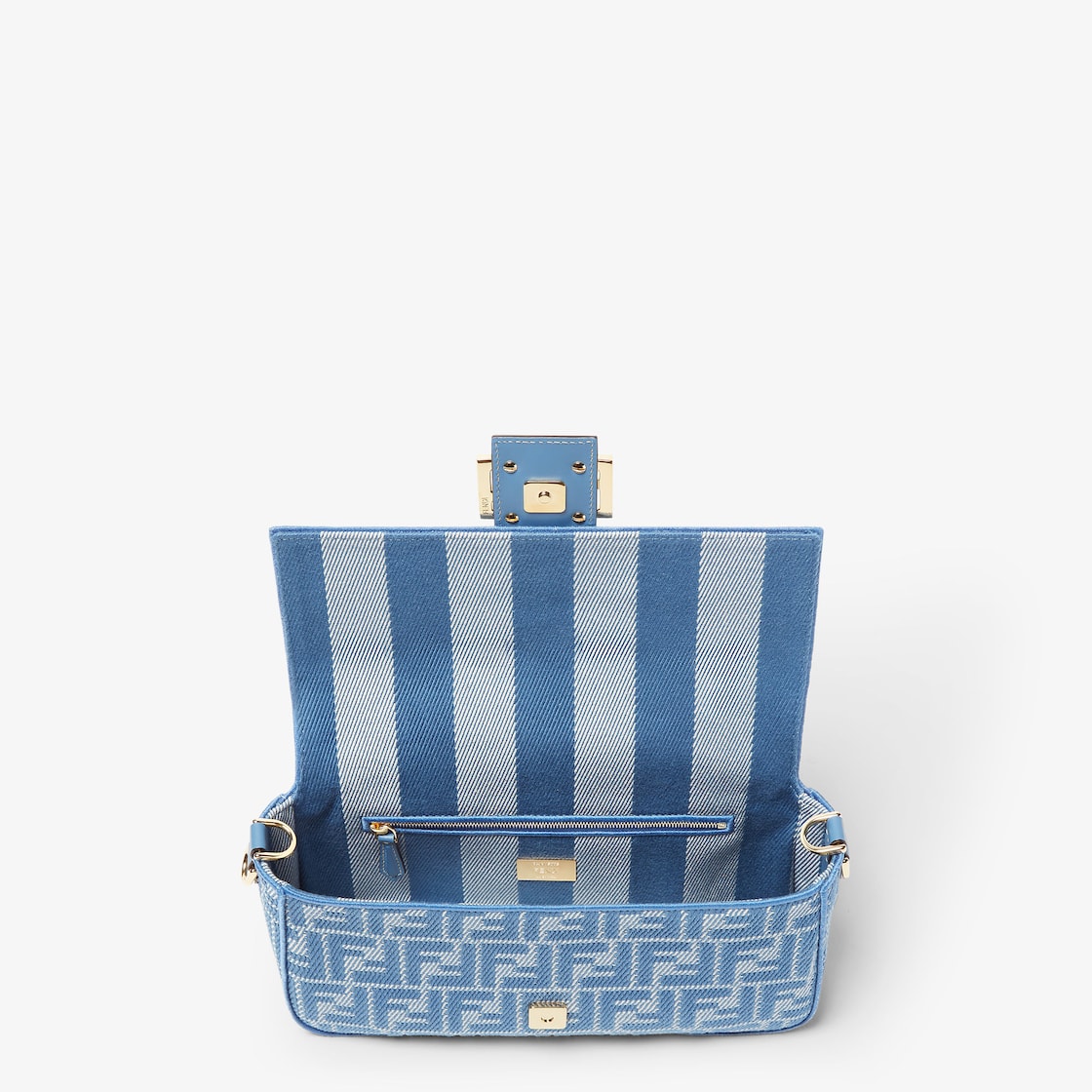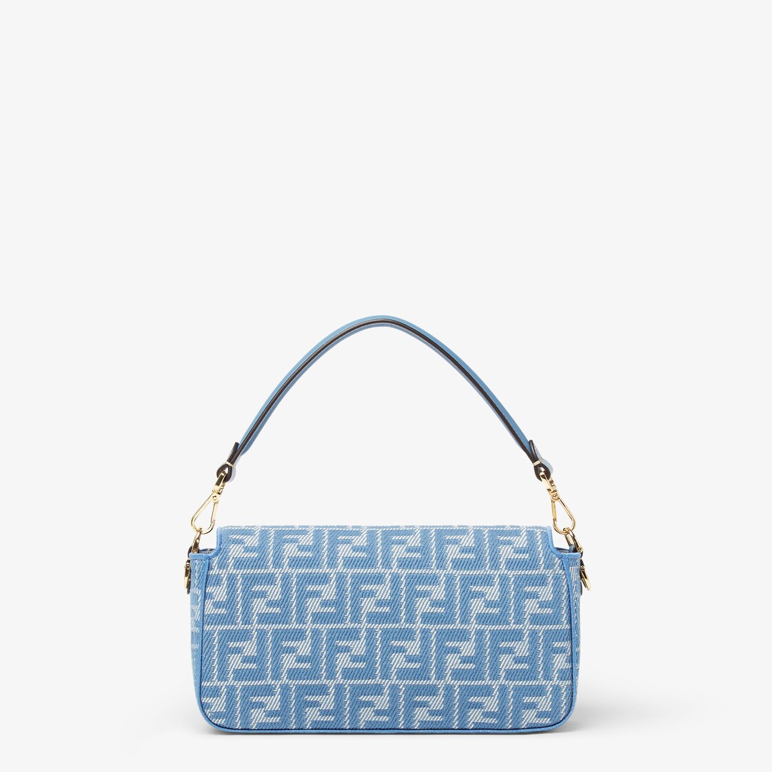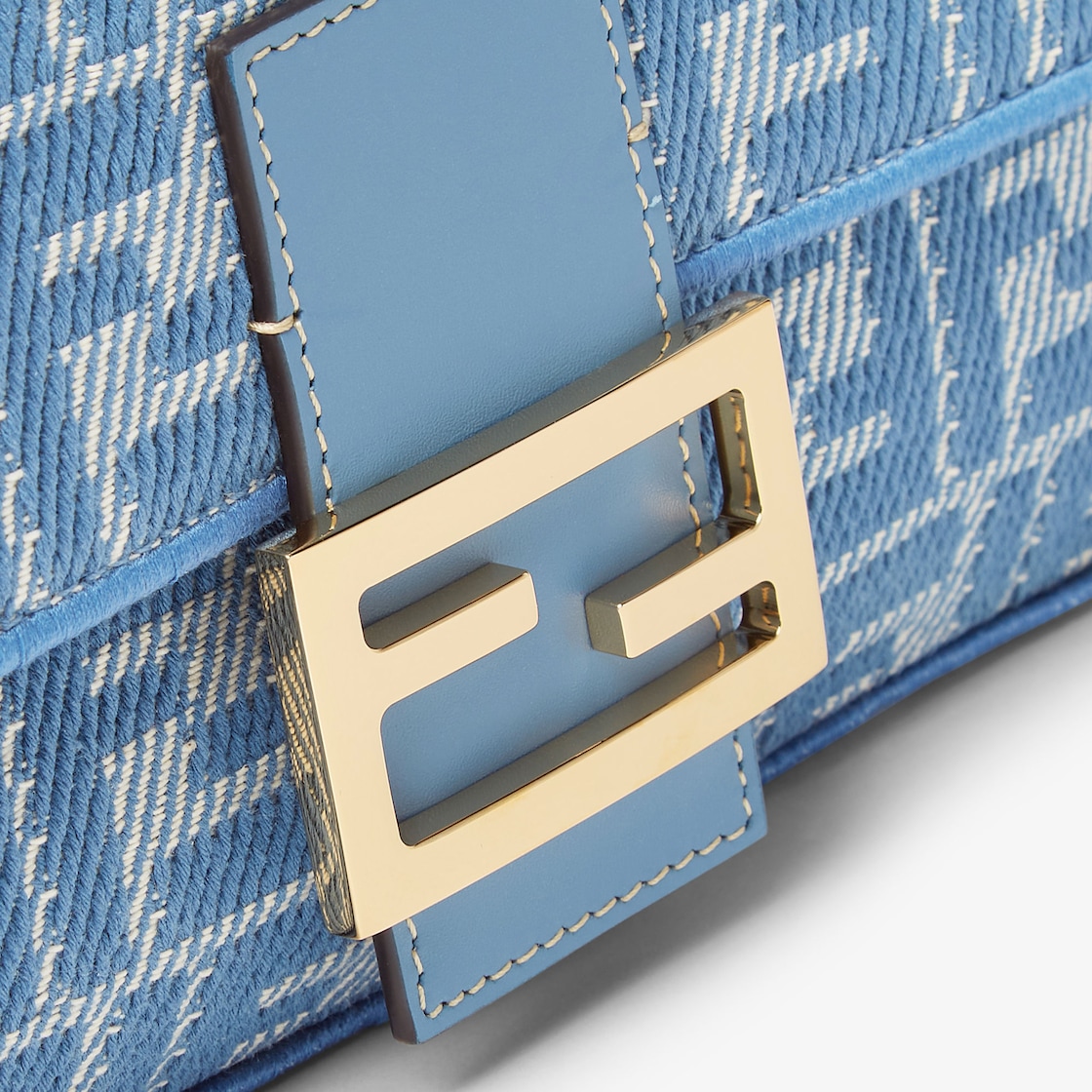 Realizzata in jacquard FF effetto denim nei toni del blu. Decorata con chiusura FF e dettagli in pelle tono su tono.