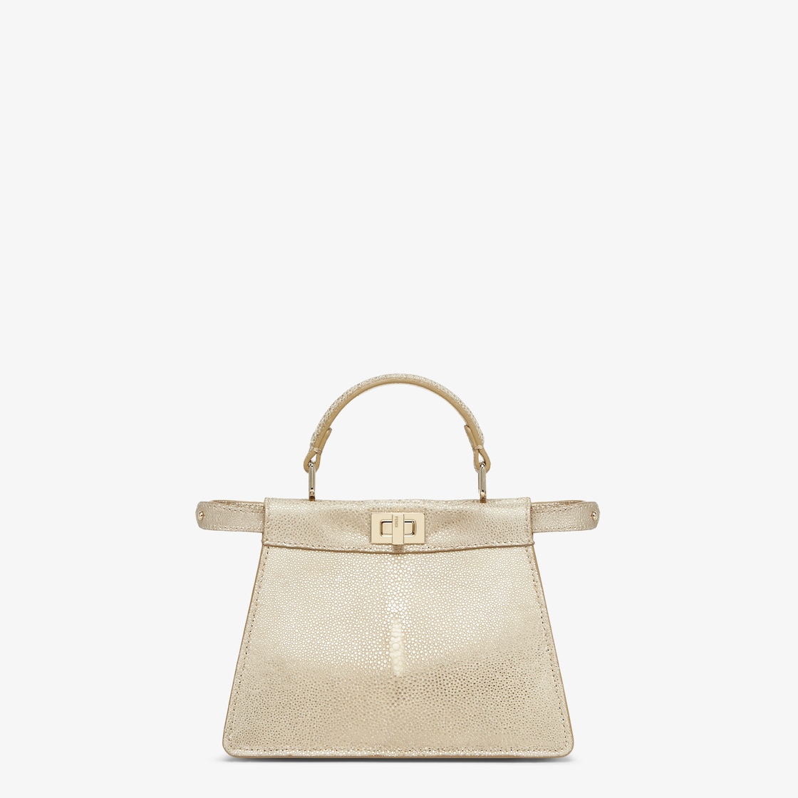 Iconica borsa Peekaboo ISeeU misura piccola, quintessenza dell’artigianalità e creatività di Fendi. Icona senza tempo, la Peekaboo nasce nel 2009. Come il gioco d’infanzia da cui prende il nome, peek-a-boo, la borsa gioca con l’alternanza tra bellezza manifesta all’esterno e celata all’interno.