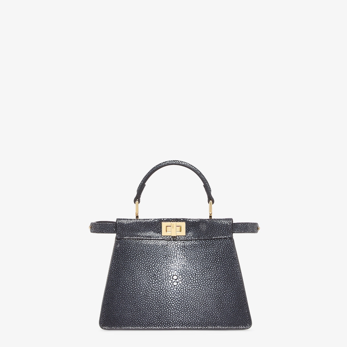 Iconica borsa Peekaboo ISeeU in un'ideale misura compatta. Realizzata in pregiata pelle di razza di colore nero smerigliata a mano. Decorata con l'iconica chiusura a girello su entrambi i lati.