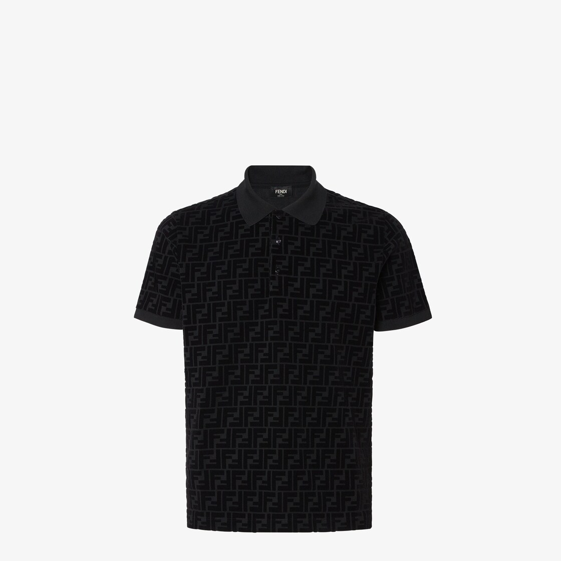 Polo dalla vestibilità regular a maniche corte. Il modello presenta il classico colletto chiuso con bottoni. Realizzata in jersey piquet nero con motivo FF in tono.