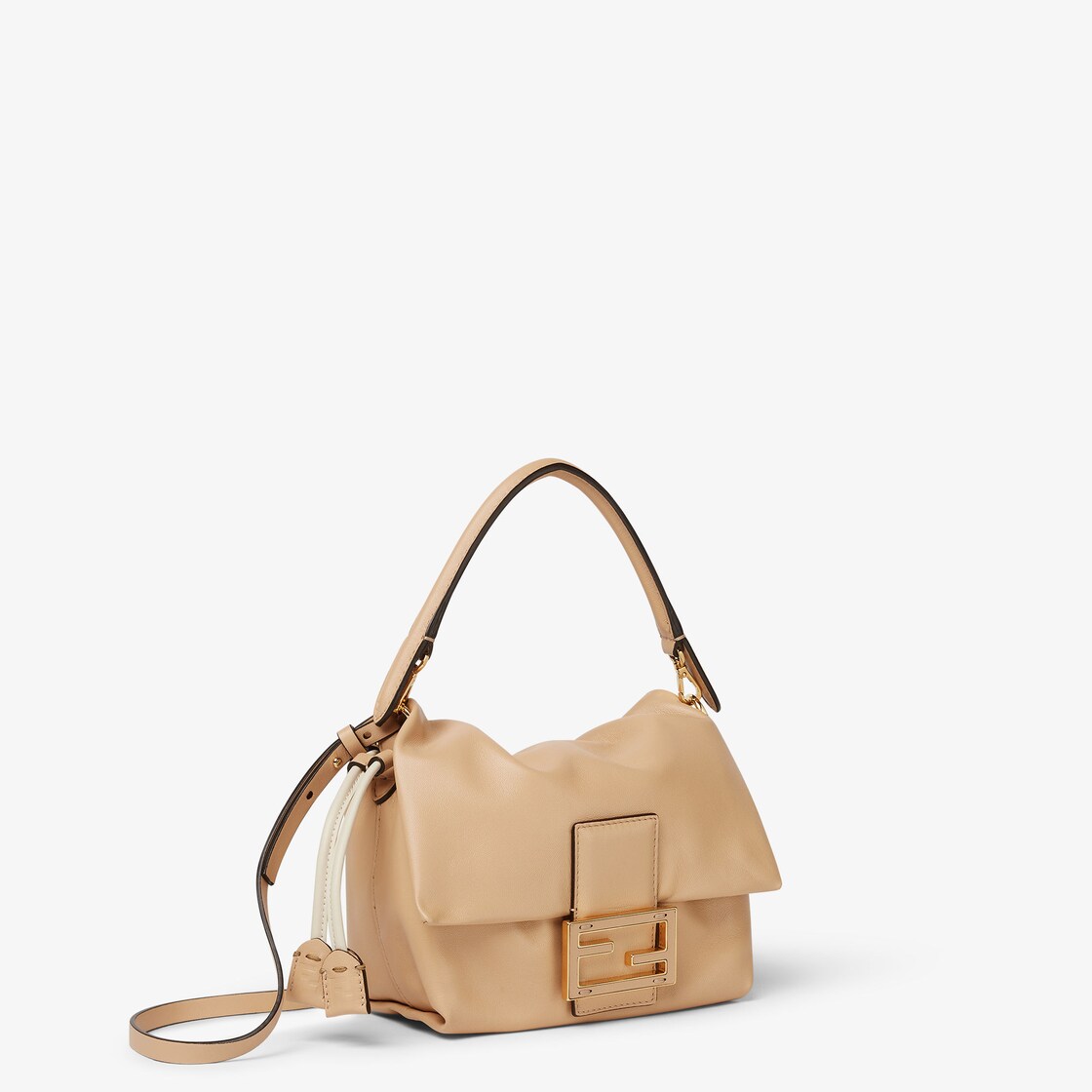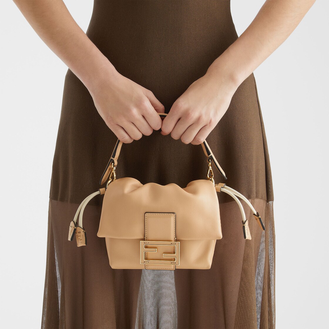 柔らかなライトピンクのナッパレザーを使用。同色のレザーのインサートをあしらった、オーバーサイズのメタルのFFモチーフの留め具。