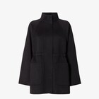 ウエストに調整可能なドローストリング、取り外し可能なフードをあしらった、パーカースタイルのブルゾン。ハイネック、ラグランスリーブ、パッチポケット付き。ダブル スライダーのあるコンシールファスナー。ベージュのウール製ダブルファブリックを使用。内側は同色のFFモチーフをあしらったデザイン。スカーフ風の切替えでダブルレイヤー効果を出したフード。左のポケットに同色のFFロゴ刺繍。