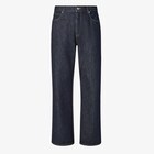 ストレートカットの5ポケットパンツ。レギュラーフィット、ハイウエストスタイル。ボタン&ジップ ファスナー。裾幅:24cm。コントラストの効いたステッチが映える、ダークブルーウォッシュのデニムを使用。ウエストバンドの背面に、セレリアFFのディテールをあしらったブラウンのレザーパッチ。