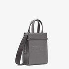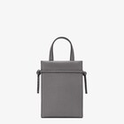 グレーのフルグレインレザーを使用し、立体的なFendi Romaロゴをあしらったミディアムサイズのトートバッグ。手作業で施した同色のセレリアステッチと、両サイドのノットタイのディテール。