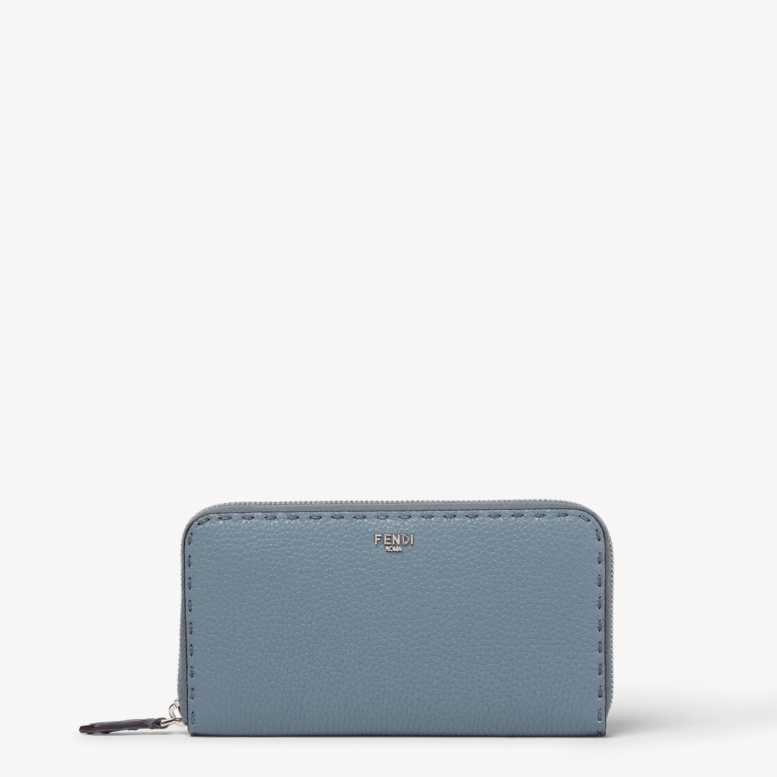 ジップ開閉式の財布。マチ付きコンパートメントx3、カードスロットx8、ジップポケットを備えています。マーキュリーブルーのカーフレザーに、マクロトップステッチ164目を手作業で施しています。1925年以来何世代にもわたりFendiの職人に受け継がれてきたアイコニックなセレリアの職人技が光ります。コントラストが映えるダークグレーレザーのライニング。メタルパーツはパラジウム仕上げ。