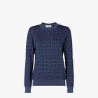 ラウンドネックのボクシーなシルエットの長袖セーター。アイコニックなデニム風のFFモチーフが斜めに入ったジャカードファブリック製。無地のリブ編みの縁のトリミング。