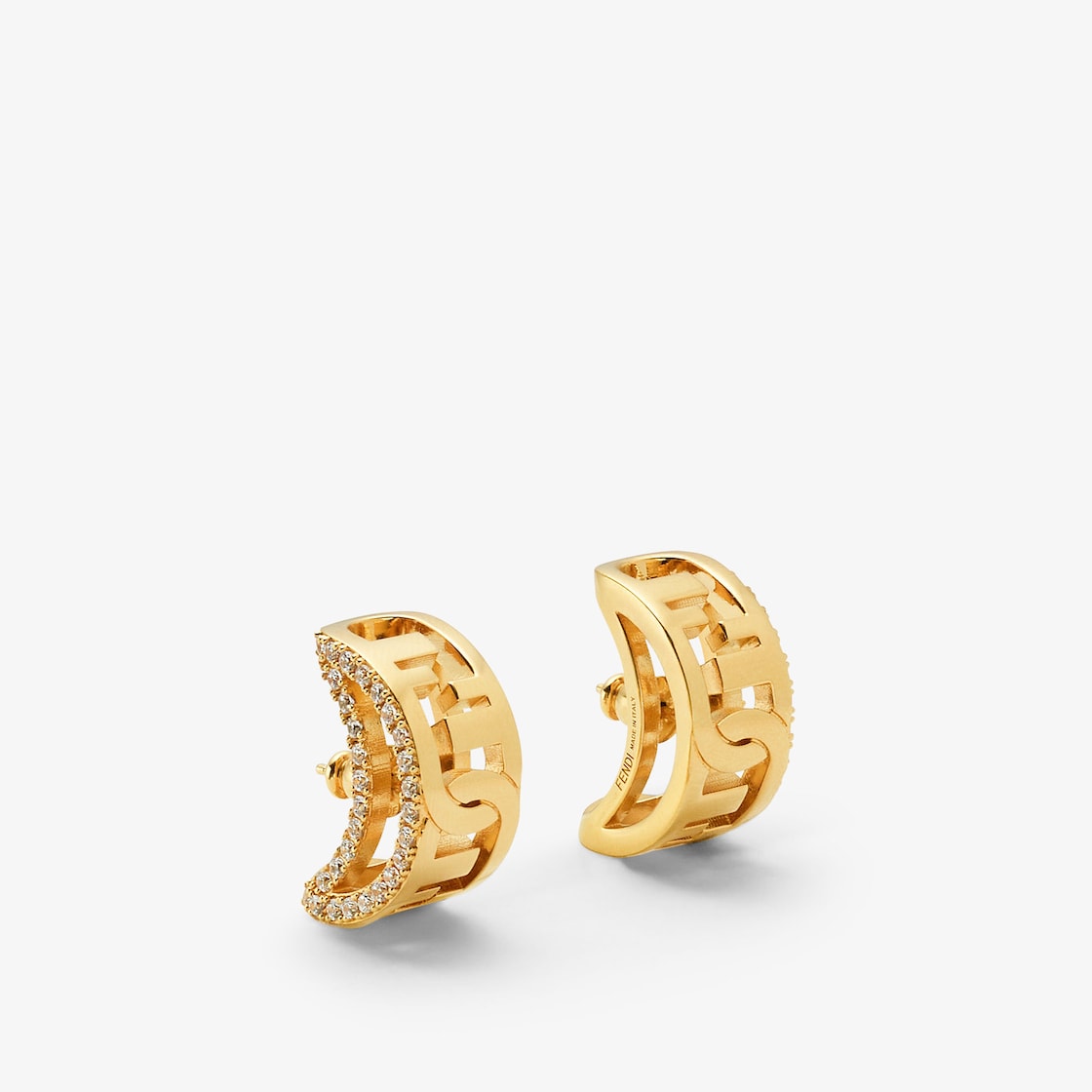 フェンディ オーロックのモチーフが連なる三日月型ピアス。ゴールド仕上げメタル製。天然クリスタルをはめ込んだデザイン。