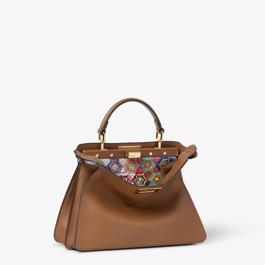 Fendiのクラフツマンシップと創造性を体現している、スモールサイズのアイコニックなピーカブー ISeeU バッグ。タイムレスなアイコン、ピーカブーは2009年に誕生しました。バッグ名の由来である子どもたちの遊び「peek-a-boo」(いないいないばあ)のように、外観の美しさと内側に秘めた美しさが魅力の、遊び心に満ちたバッグです。