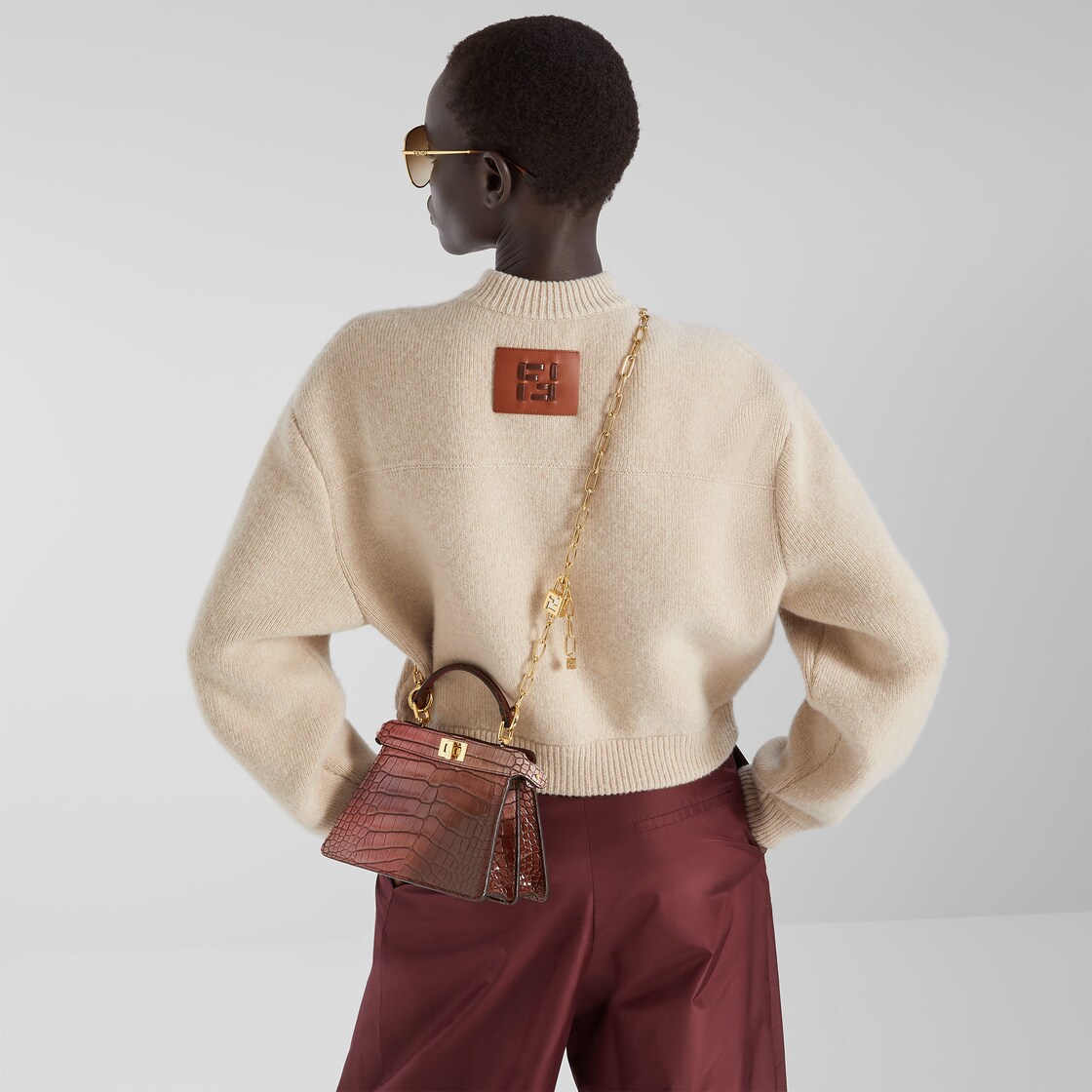 Fendiのクラフツマンシップと創造性を体現している、スモールサイズのアイコニックなピーカブー ISeeU バッグ。タイムレスなアイコン、ピーカブーは2009年に誕生しました。バッグ名の由来である子どもたちの遊び「peek-a-boo」(いないいないばあ)のように、外観の美しさと内側に秘めた美しさが魅力の、遊び心に満ちたバッグです。