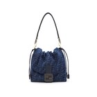 フロック加工デニムのライニングを施した内側の大きなコンパートメントはドローストリング仕様。同色の柔らかいナッパレザーの紐と特別なディテール付き。