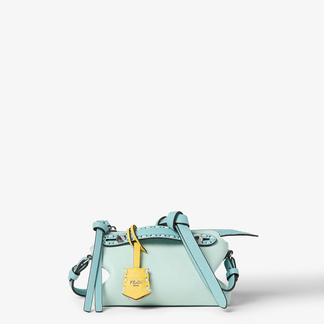 ハンドルと長さ調節・取り外し可能なノット付きショルダーストラップを備えているので、ハンドバッグとしても、ショルダーバッグやクロスボディとしても活躍します。ハンドルとストラップはどちらもターコイズカラーのカーフレザー製。