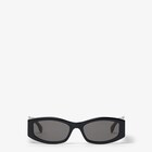 ブラックのアセテートを使用した、オーバル型のフォーエバー フェンディ サングラス。大きなゴールドカラーのメタルのFFをはめ込んだワイドなテンプル。スモークグレーのレンズ。