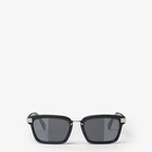 FFモチーフでカスタマイズしたヒンジが特徴的な、スクエア型のブラックアセテート製サングラス。グレーの半透明のテンプルにはアイコニックなペカンモチーフをあしらい、メタルの芯をパラジウムカラーで仕上げました。シルバーのミラー効果があるペカンモチーフをあしらった、スモークグレーのレンズ。