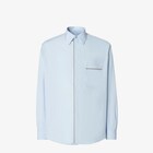 コンフォートフィットの長袖シャツ。左胸にパッチポケット。フライフロント。ライトブルーのオックスフォードコットンを使用。胸ポケットにセレリアFFロゴを刺繍し、前あきと胸ポケットにはペカンのトリミングをあしらいました。